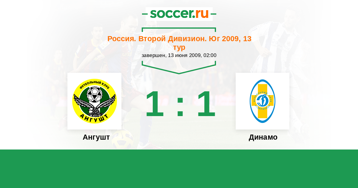 Россия. Вторая лига. Группа 1 30.09.2009 Динамо Ставрополь Логотип футбольный клуб Динамо Ставрополь 3:0 Логотип футбольный клуб Ангушт (Назрань) Ангушт