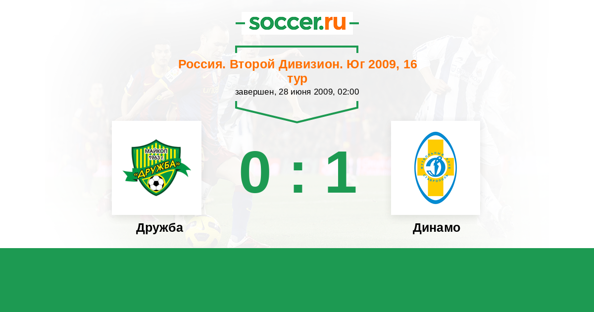 Россия. Вторая лига. Группа 1 15.10.2009 Динамо Ставрополь Логотип футбольный клуб Динамо Ставрополь 1:3 Логотип футбольный клуб Дружба (Майкоп) Дружба