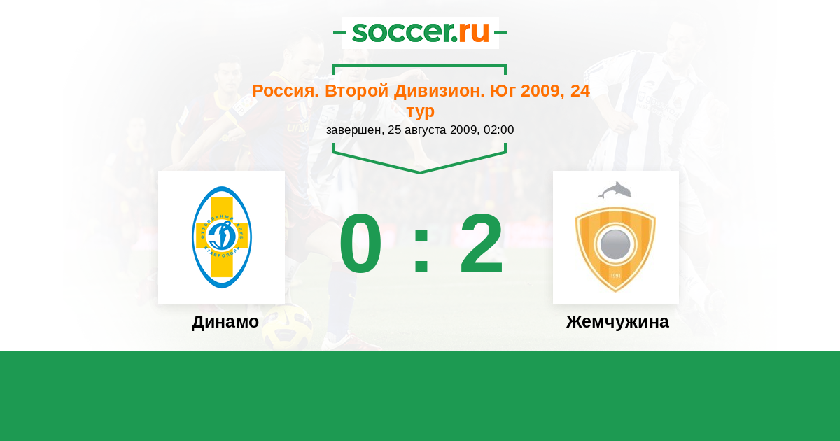 Россия. Вторая лига. Группа 1 07.05.2009 Жемчужина Логотип футбольный клуб Жемчужина (Сочи) 3:2 Логотип футбольный клуб Динамо Ставрополь Динамо Ставрополь