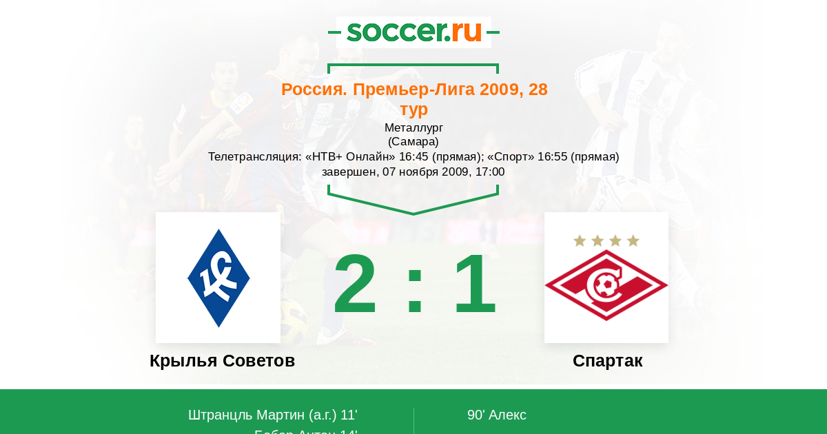 Протокол матча Крылья Советов против Спартак