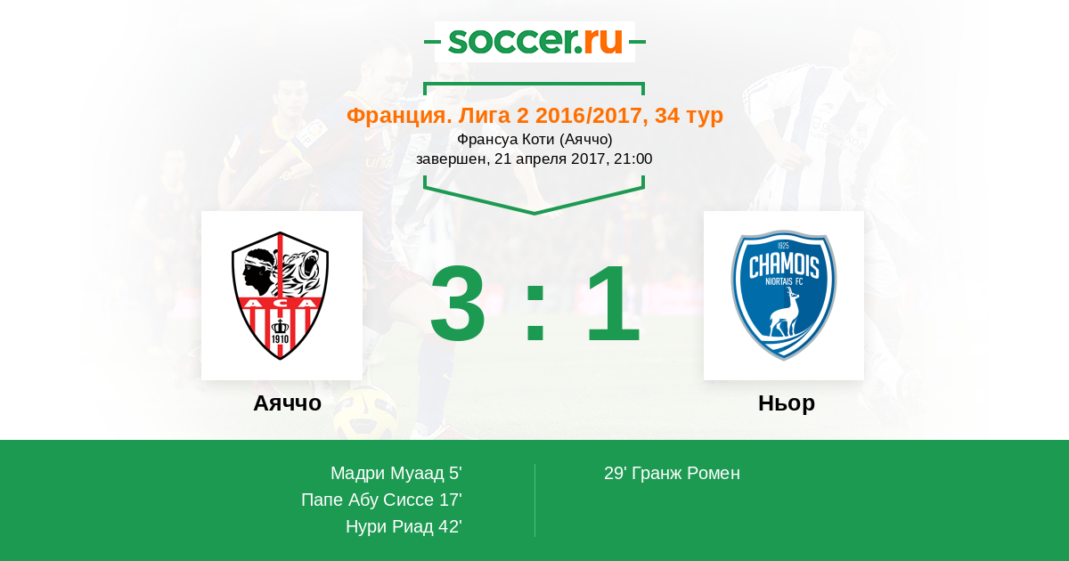 17' (2:0) Папе Абу Сиссе (6) (Нури Риад (7))