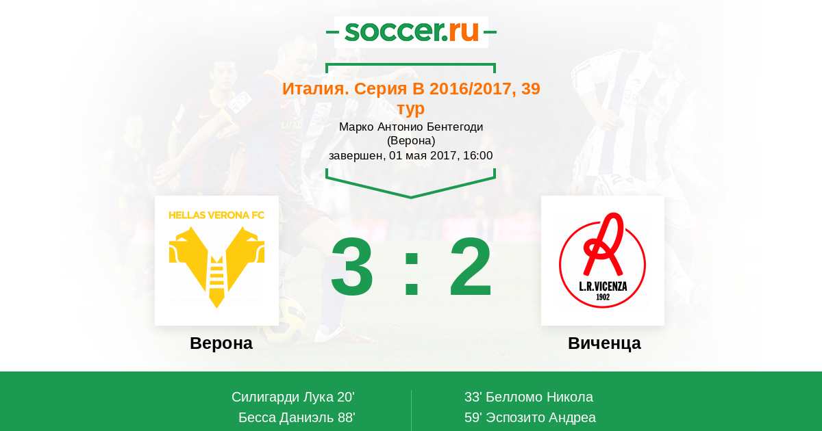 Протокол матча Верона против Виченца