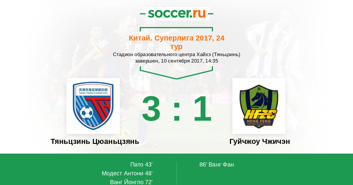 Протокол матча Тяньцзинь Цюаньцзянь против Гуйчжоу Чжичэн
