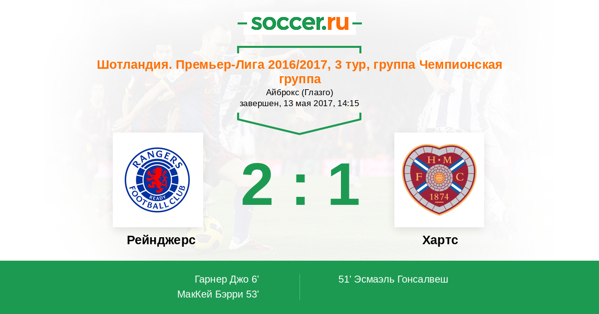 Протокол матча Рейнджерс против Хартс