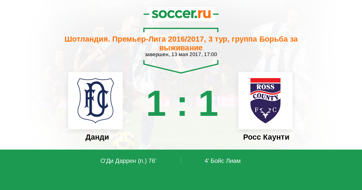 Протокол матча Данди против Росс Каунти