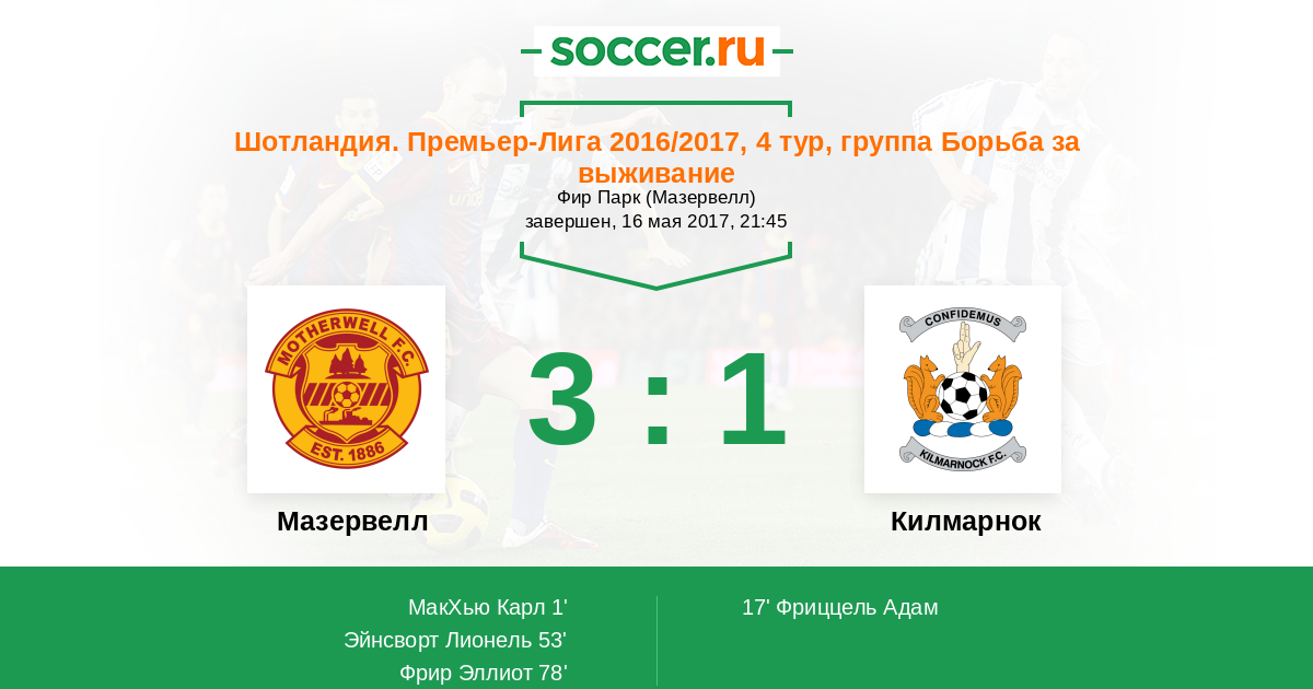 Протокол матча Мазервелл против Килмарнок