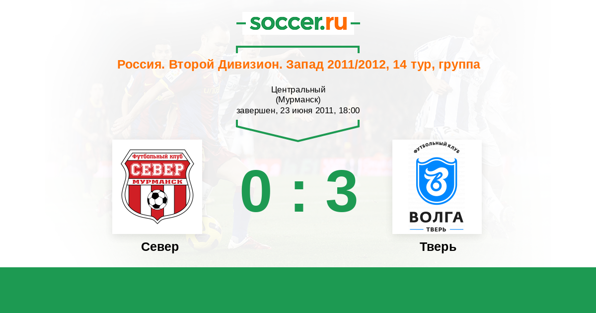 Россия. Вторая лига. Группа 2 07.09.2012 Север Логотип футбольный клуб Север (Мурманск) 2:1 Логотип футбольный клуб Тверь Тверь