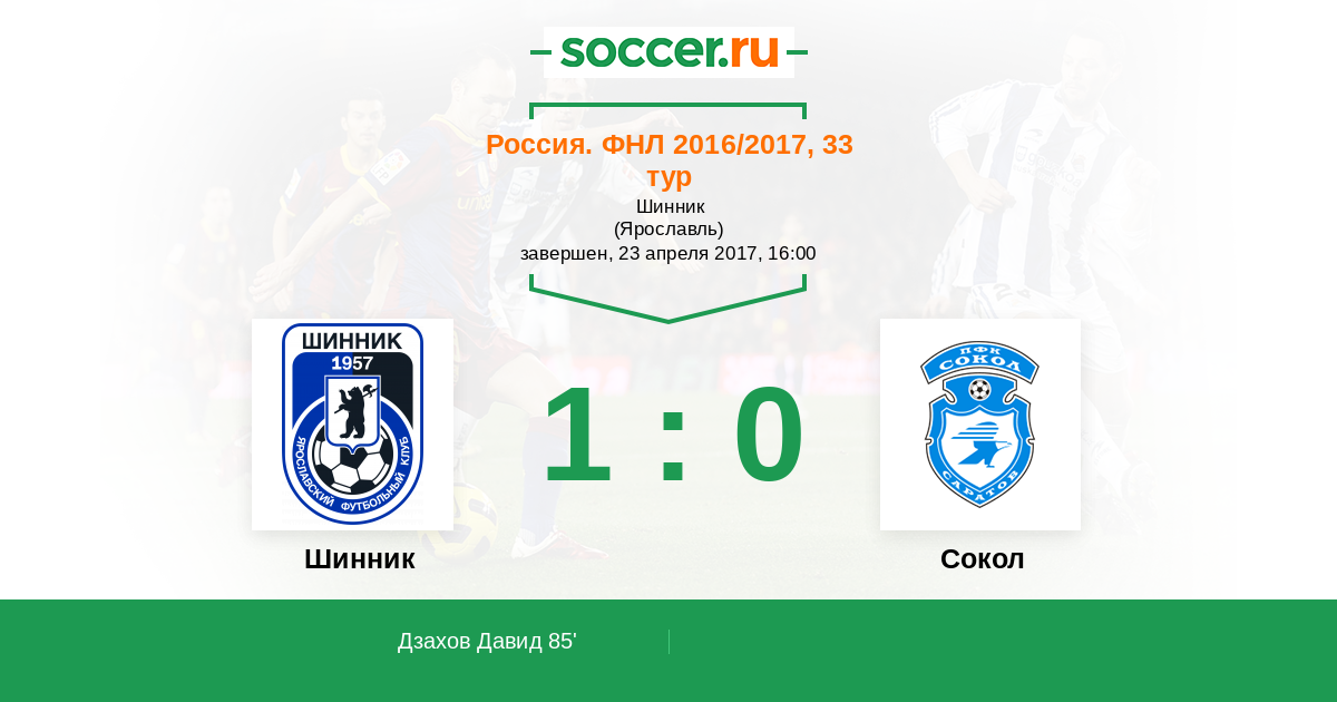 Протокол матча Шинник против Сокол