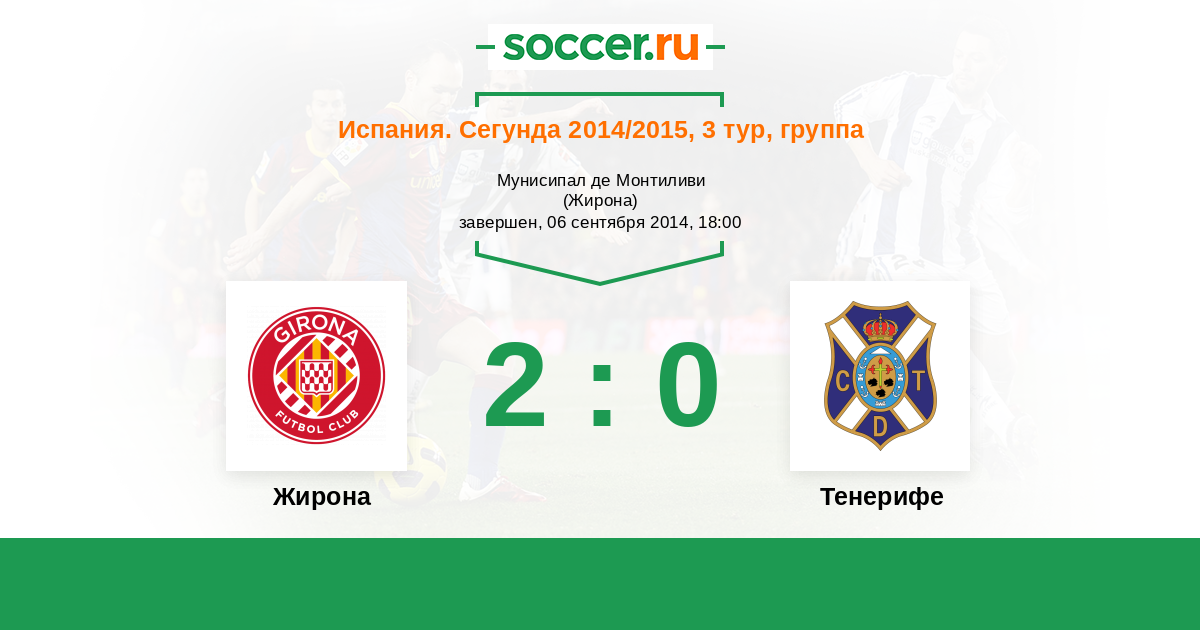 Испания. Кубок 09.09.2014 Жирона Логотип футбольный клуб Жирона 0:0 (6:5) Логотип футбольный клуб Тенерифе (Санта-Крус-де-Тенерифе) Тенерифе
