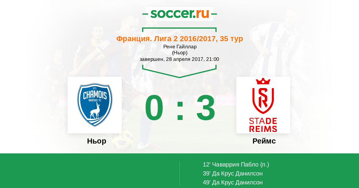 Протокол матча Ньор против Реймс