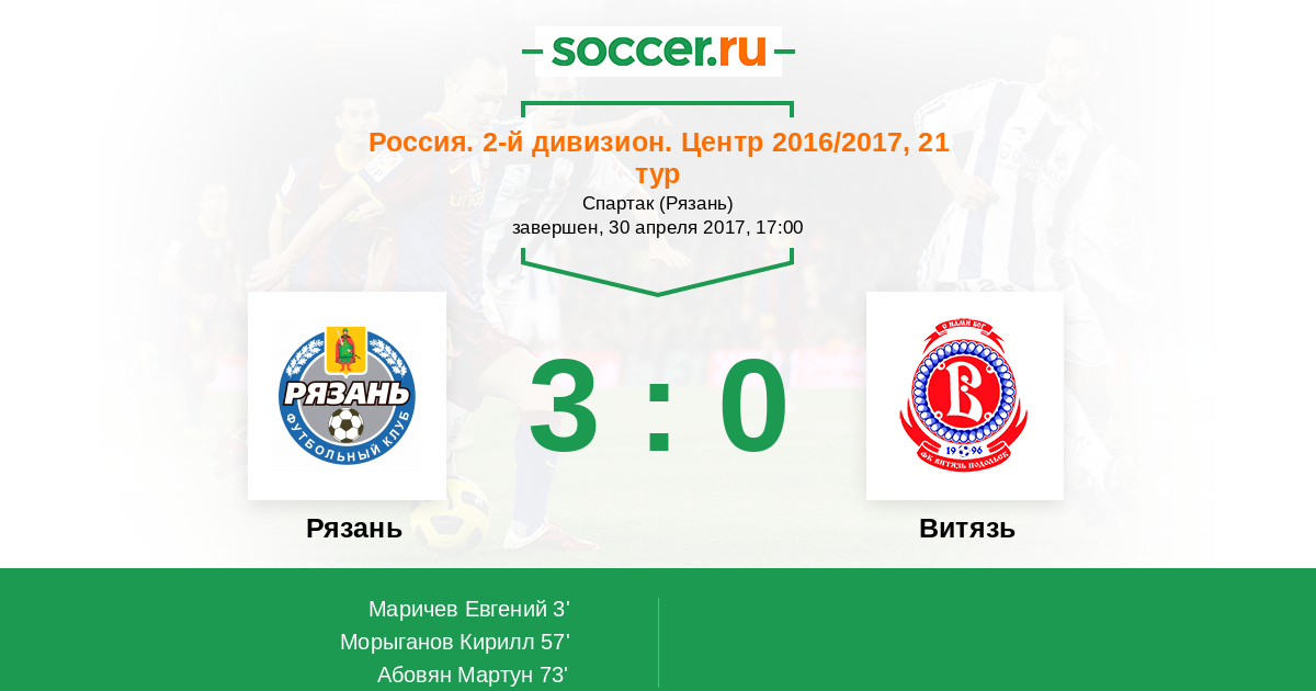 Протокол матча Рязань против Витязь