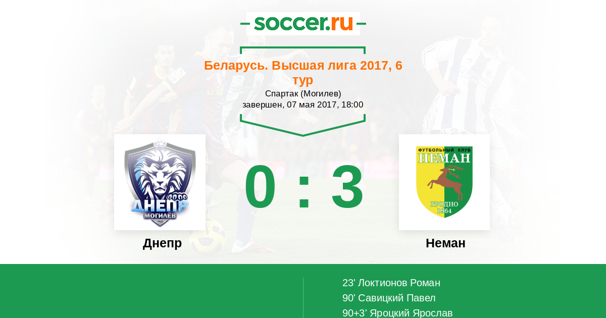 Протокол матча Днепр против Неман