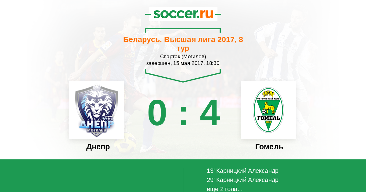 Протокол матча Днепр против Гомель