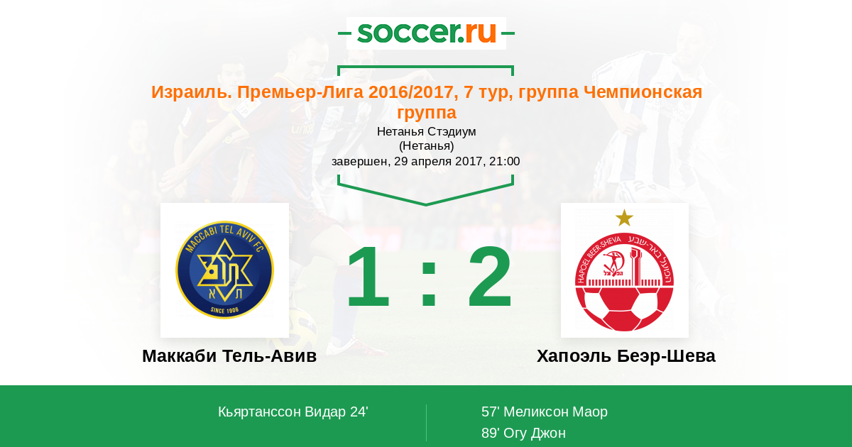 Протокол матча Маккаби Тель-Авив против Хапоэль Беэр-Шева