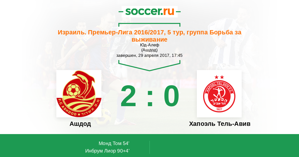 Протокол матча Ашдод против Хапоэль Тель-Авив