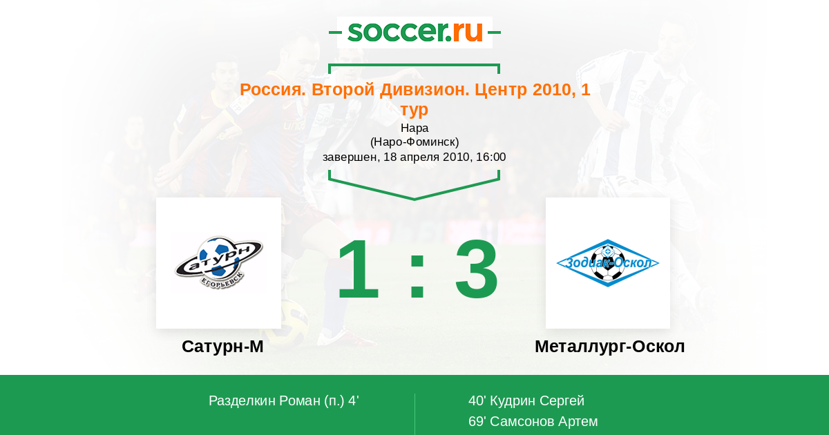 Протокол матча Сатурн-2 против Металлург-Оскол