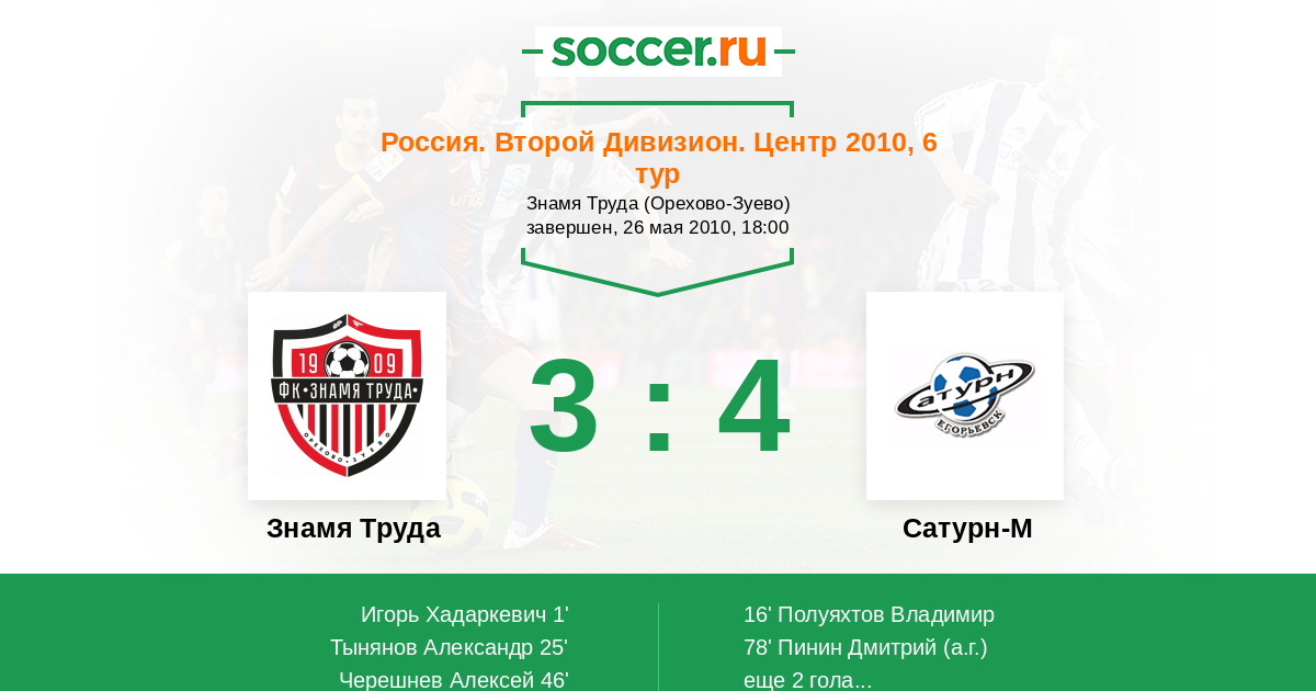 Протокол матча Знамя Труда против Сатурн-2