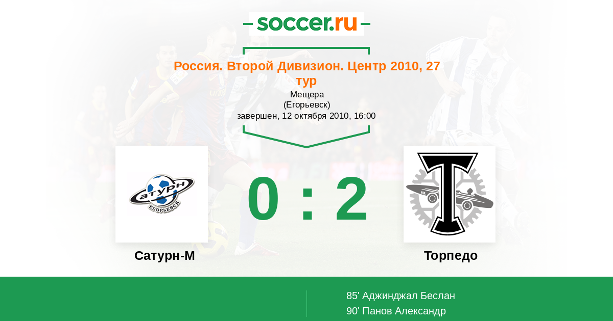 Протокол матча Сатурн-2 против Торпедо