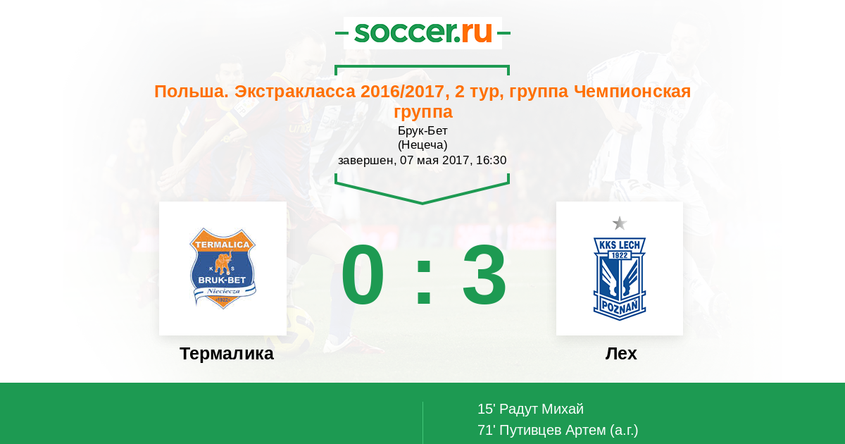 Протокол матча Термалика против Лех