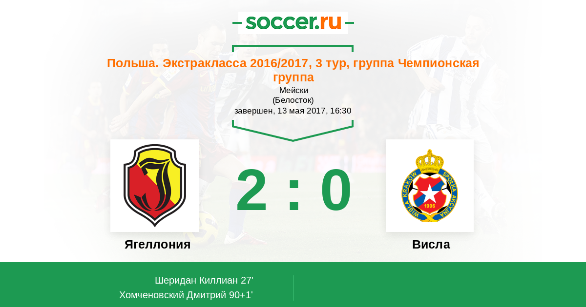 Протокол матча Ягеллония против Висла