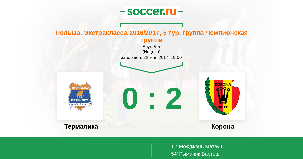 Протокол матча Термалика против Корона
