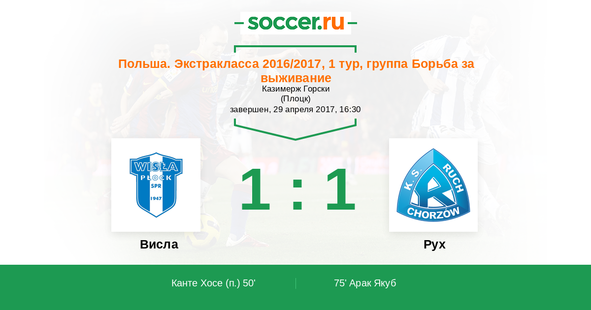 Протокол матча Висла против Рух