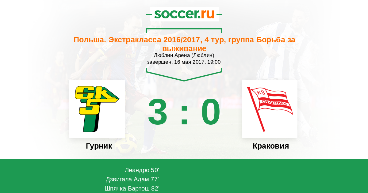 Протокол матча Гурник против Краковия