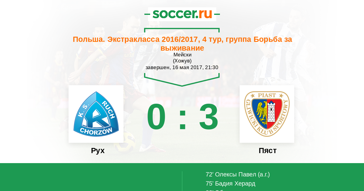 Протокол матча Рух против Пяст