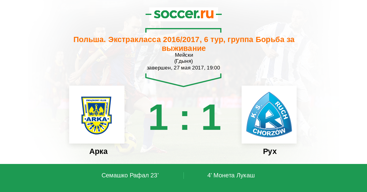 Протокол матча Арка против Рух