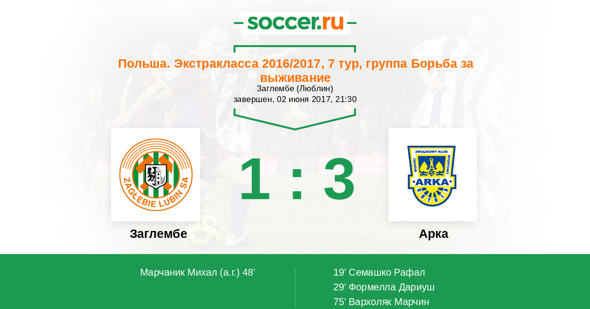 63' Возняк Аркадиуш (9) уходит с поля, Мазек Камил (6) вышел на поле