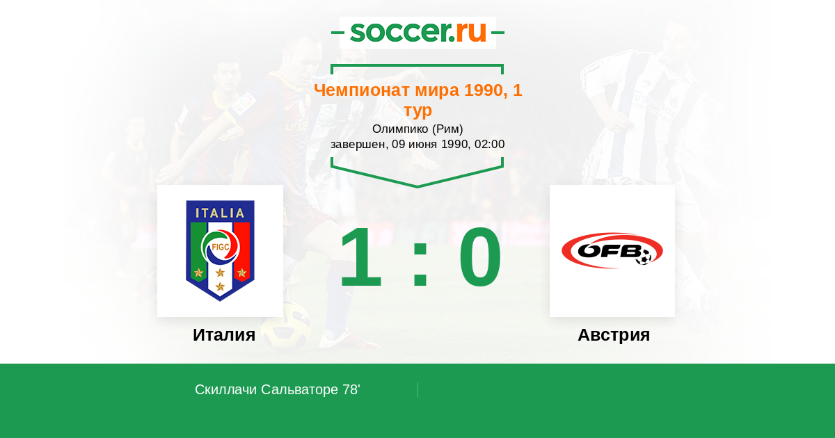 Протокол матча Италия против Австрия