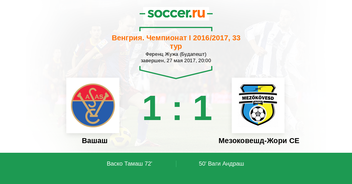 Протокол матча Вашаш против Мезоковешд-Жори СЕ