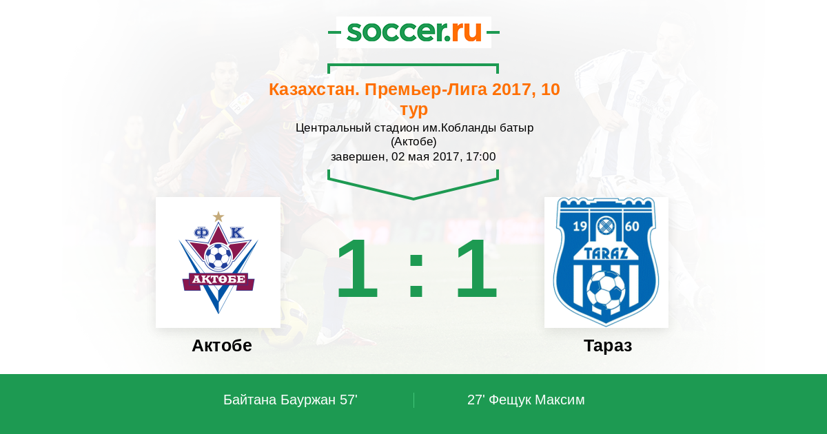 Протокол матча Актобе против Тараз