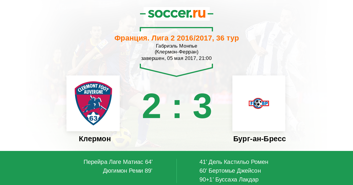 Протокол матча Клермон против Бург-ан-Бресс