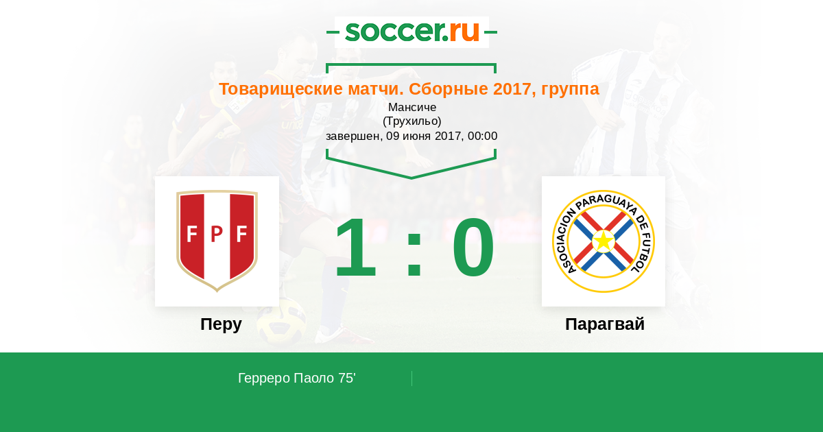 75' (1:0) Герреро Паоло (9)