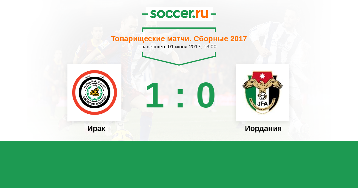 Товарищеские матчи. Сборные 07.06.2007 Иордания Логотип Иордания 1:1 Логотип Ирак Ирак