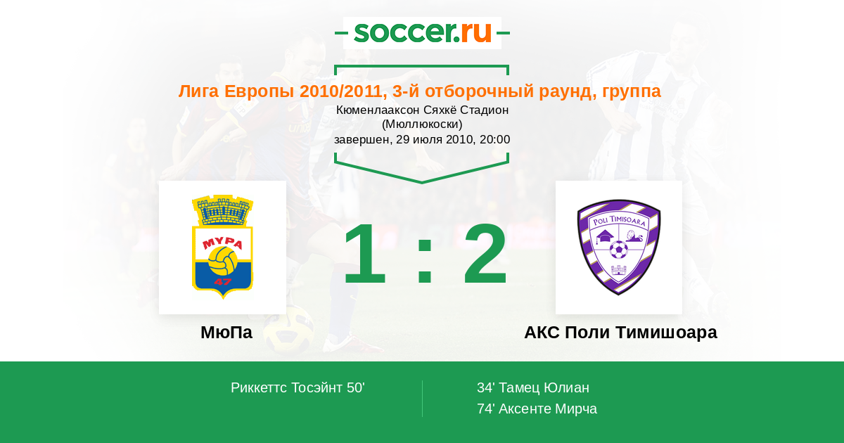 Протокол матча МюПа против АКС Поли Тимишоара