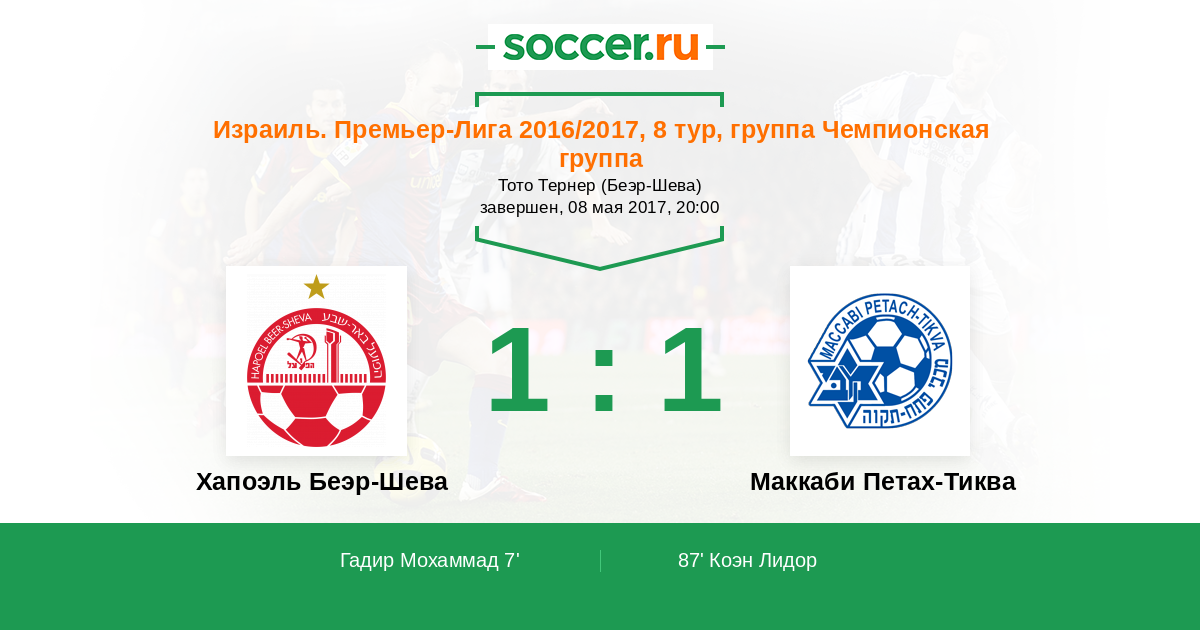 Протокол матча Хапоэль Беэр-Шева против Маккаби Петах-Тиква
