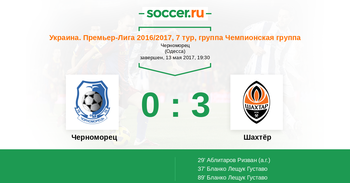 Протокол матча Черноморец против Шахтёр