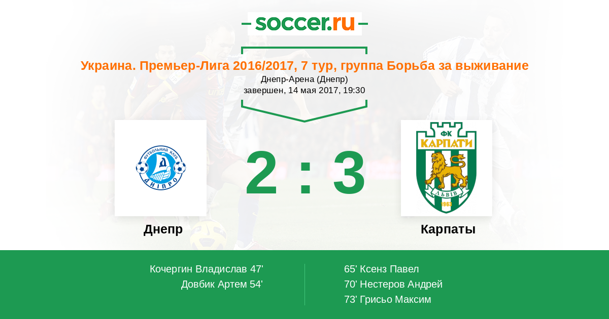 Протокол матча Днепр против Карпаты