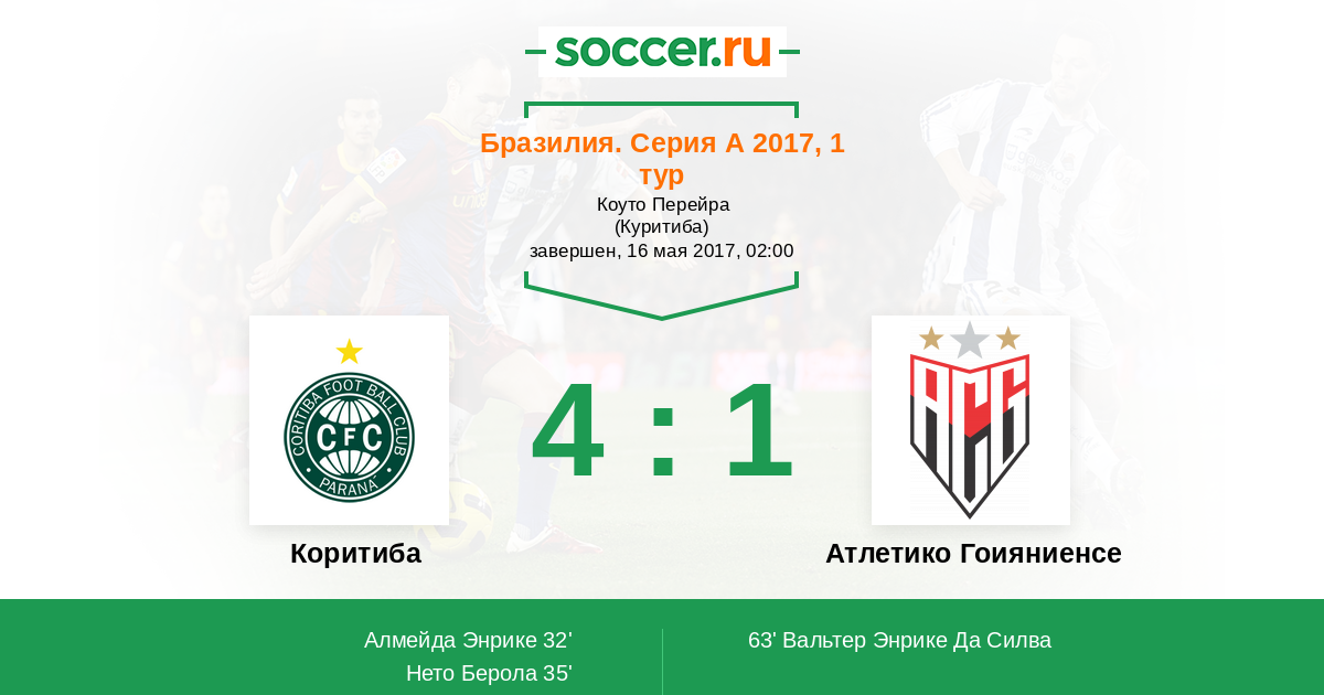 Протокол матча Коритиба против Атлетико Гоияниенсе