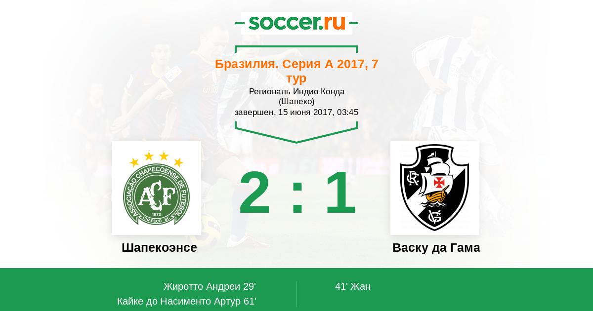 Протокол матча Шапекоэнсе против Васку да Гама