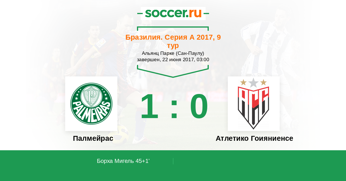 Протокол матча Палмейрас против Атлетико Гоияниенсе