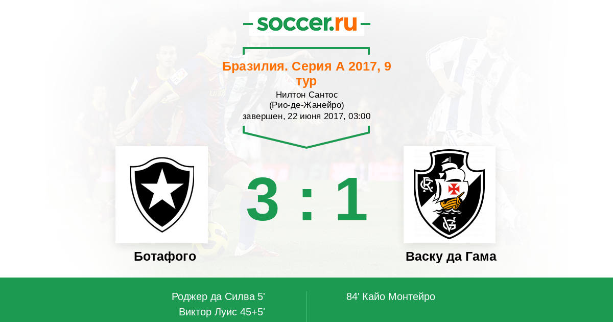 Протокол матча Ботафого против Васку да Гама