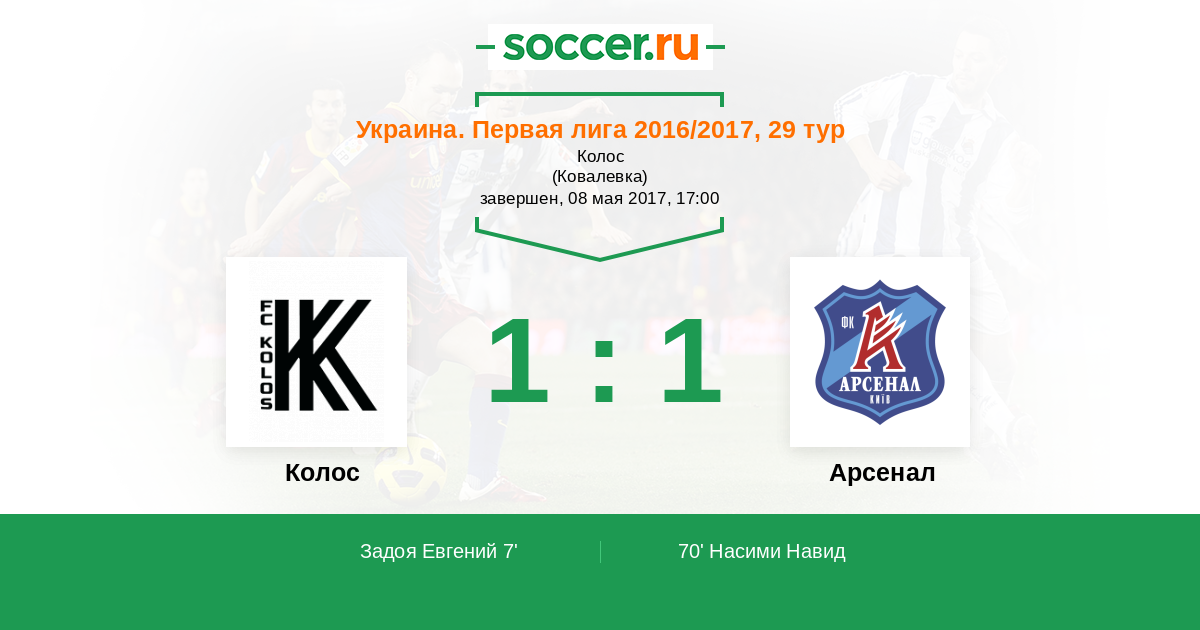 Протокол матча Колос против Арсенал