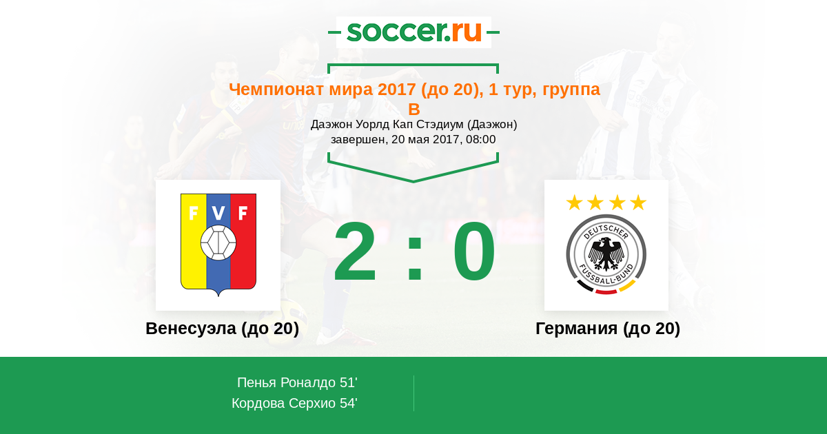 Протокол матча Венесуэла (до 20) против Германия (до 20)