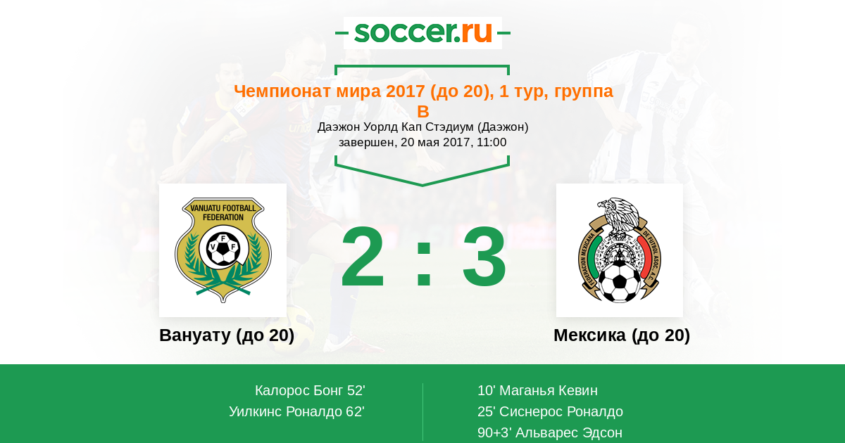 Протокол матча Вануату (до 20) против Мексика (до 20)