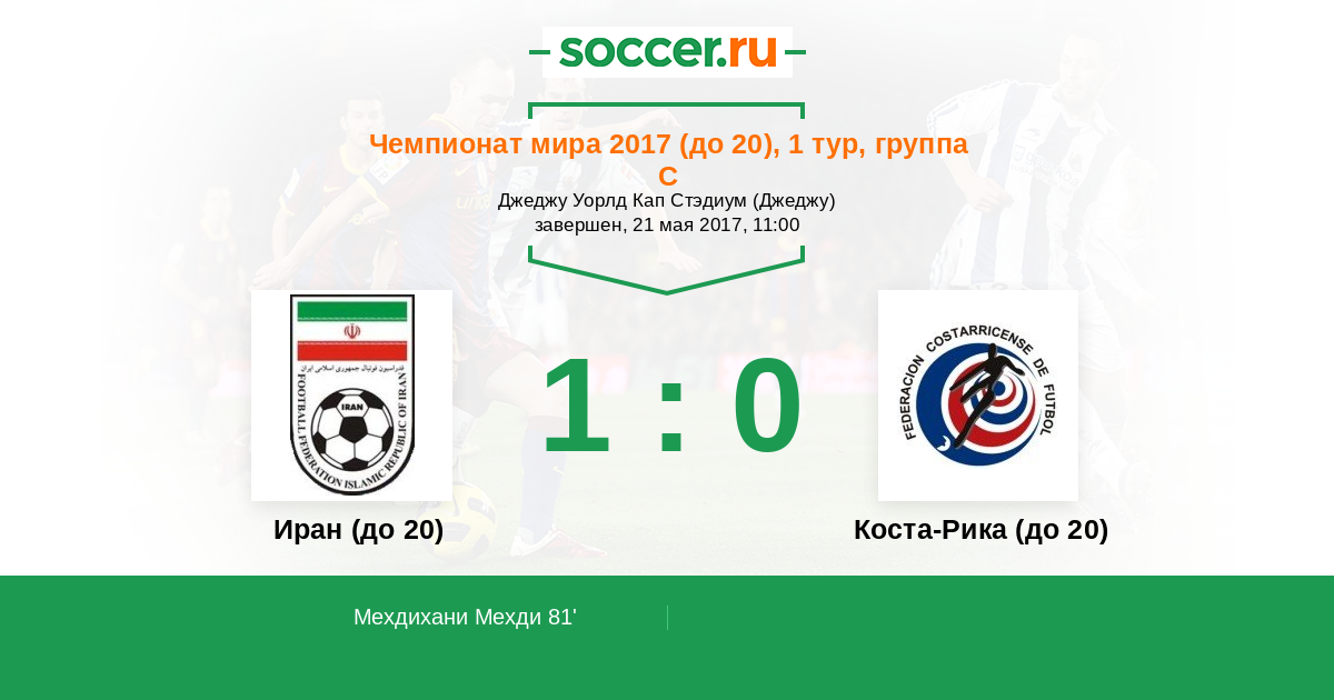 Протокол матча Иран (до 20) против Коста-Рика (до 20)