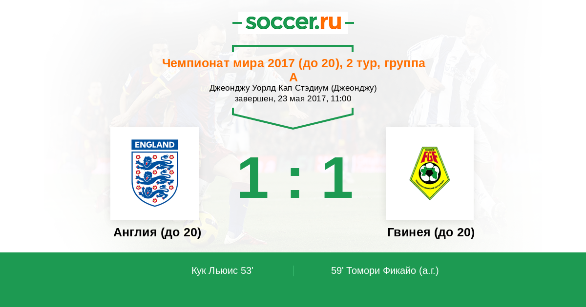 Протокол матча Англия (до 20) против Гвинея (до 20)