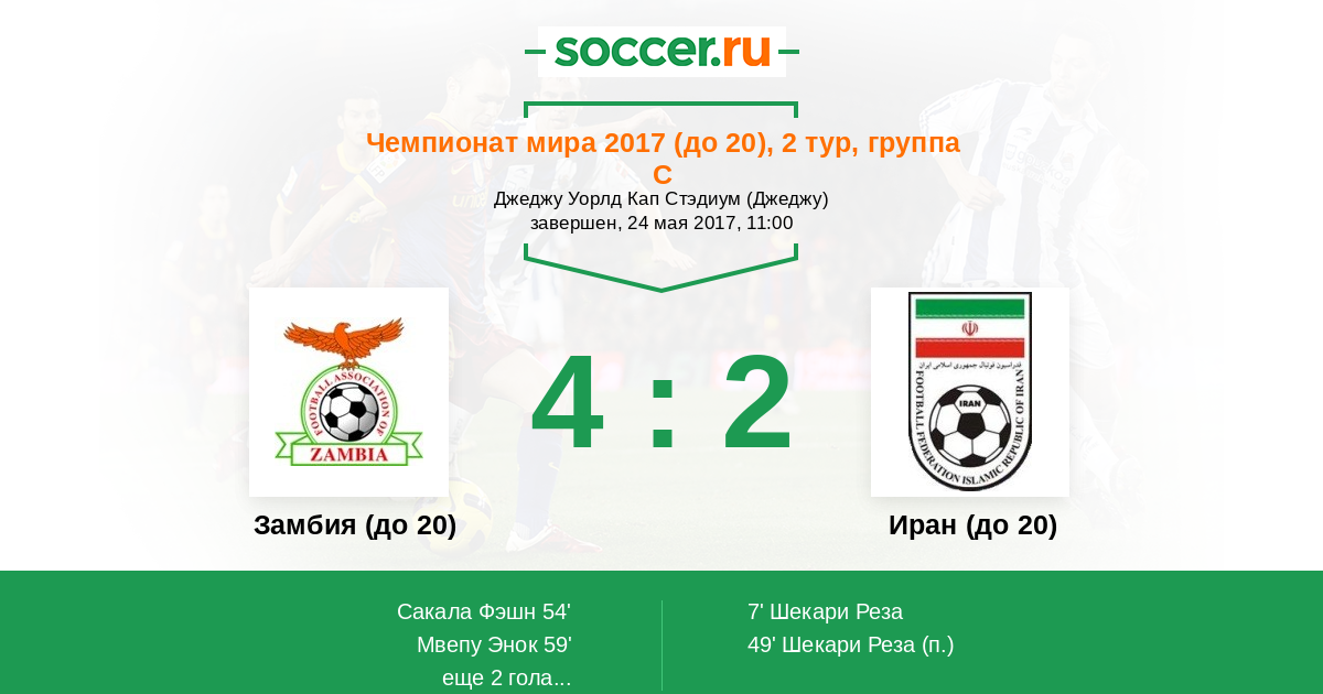 Протокол матча Замбия (до 20) против Иран (до 20)